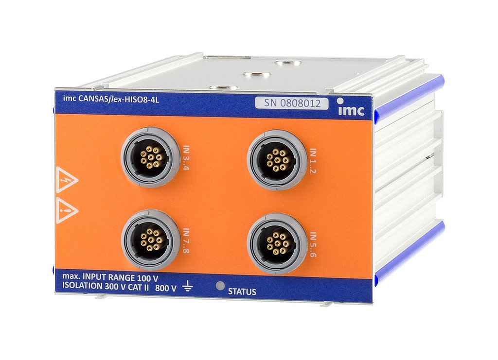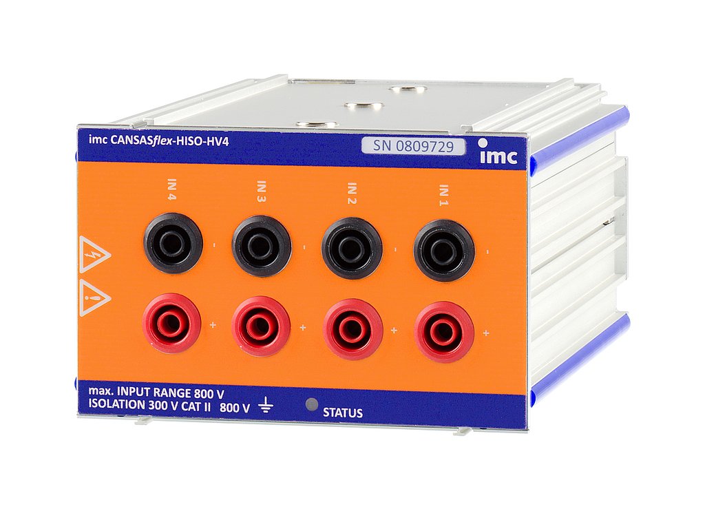 CAN-Bus 측정 모듈 imc CANSASflex-HISO-HV4는 4개의 채널에서 최대 800V의 차동 전압 측정을 제공합니다.
