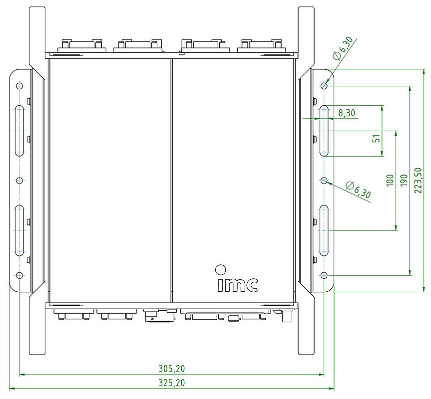 Eigenschaften: Diese Befestigungskonstruktion ist besonders geeignet für eine Befestigung eines imc CRONOS-SL Gerätes auf eine Unterlage. Zur Befestigung zweier, übereinander montierter Geräte können die gleichen gewinkelten Elemente verwendet werden, die dann jeweils miteinander verschraubt werden. Für eine Befestigung ist eine Ausrüstung mit Gewindebolzen erforderlich. Geräte ab Liefertermin 01/2012 sind mit Gewindebolzen ausgerüstet, so dass die Befestigungskonstruktion mit vier M4 Schrauben an der Seitenwand zu montieren ist.