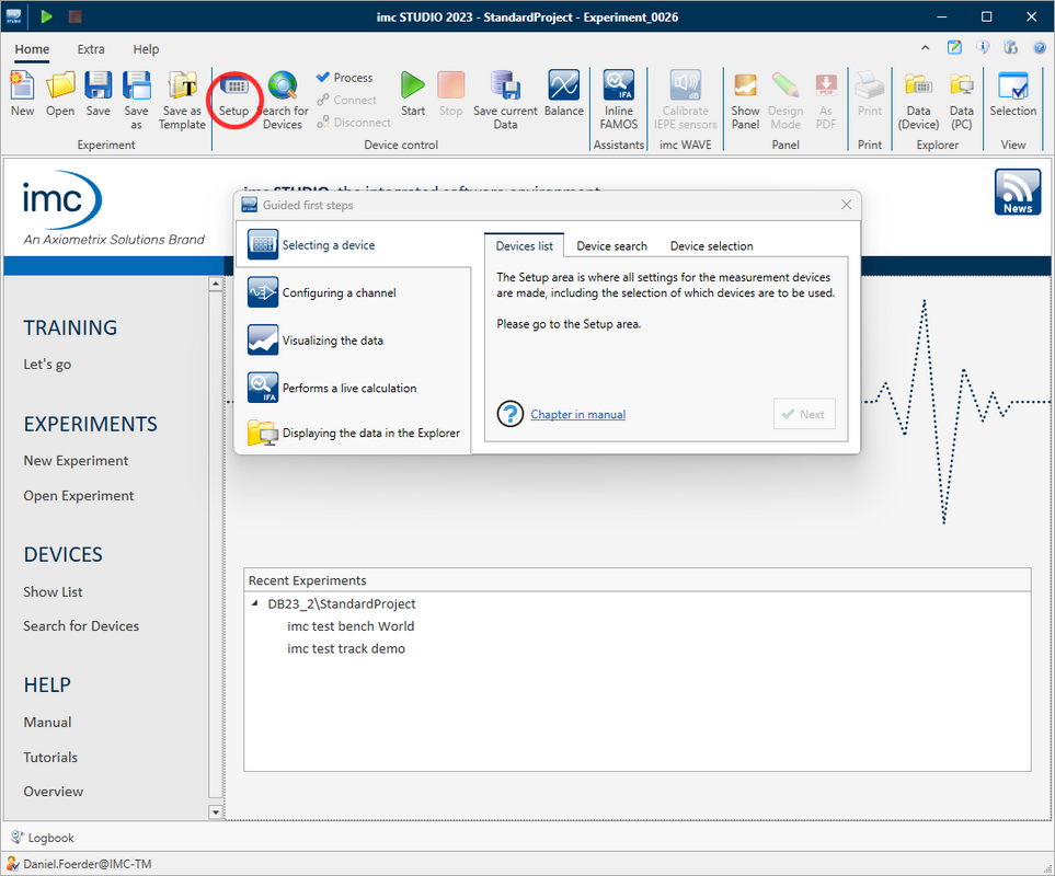 이제 사용자는 기본으로 제공하는 다양한 데모 Experiments 템플릿을 통해 바로 테스트에 사용하거나 영감을 얻을 수 있습니다. Experiments는 실제 고객들의 테스트 프로젝트를 기반으로 하여 imc STUDIO의 다양한 가능성을 보여주는 수많은 기술적인 패널이 포함되어 있습니다. 제작되어있는 프로그램 탭은 시뮬레이션된 라이브 데이터와 함께 즉시 확인이 가능하여 DAQ 하드웨어의 연결이 필요하지 않습니다. 데모 프로젝트는 imc 웹사이트에서 다운로드할 수 있습니다.