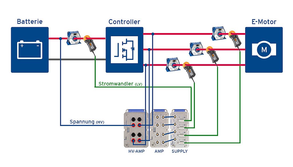 타사 장치의 소프트웨어 통합을 위한 imc STUDIO 3PDI 인터페이스(Third Party Device Integration)를 사용하면 고대역폭의 전력계를 imc 측정 네트워크에 통합할 수 있습니다. 이것은 예를 들어 펄스 폭 변조 전압과 전기 모터의 결과 전류를 분석하는 데 적용할 수 있습니다.