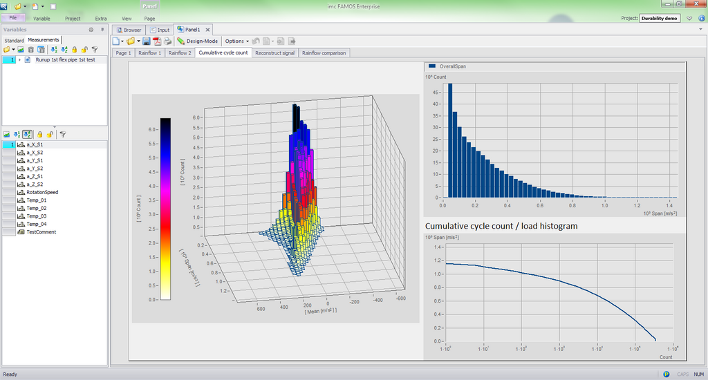 측정의 전체 작동 및 디스플레이에는 imc STUDIO 측정 소프트웨어가 사용됩니다. 시스템에 연결하지 않은 상태에서도 편리하게 측정을 구성할 수 있습니다. 또한 측정 데이터에 대한 다양한 시각화 옵션도 제공합니다. imc 커브 창은 다양한 대화형 그래픽 요소뿐만 아니라 광범위한 1D, 2D 및 3D 시각화 옵션을 제공합니다.